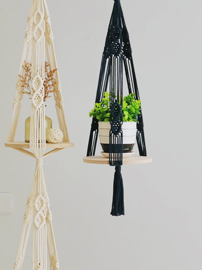 Boho Wooden Board Plant Hanger – Cotton Cord Indoor Plant Shelf S23