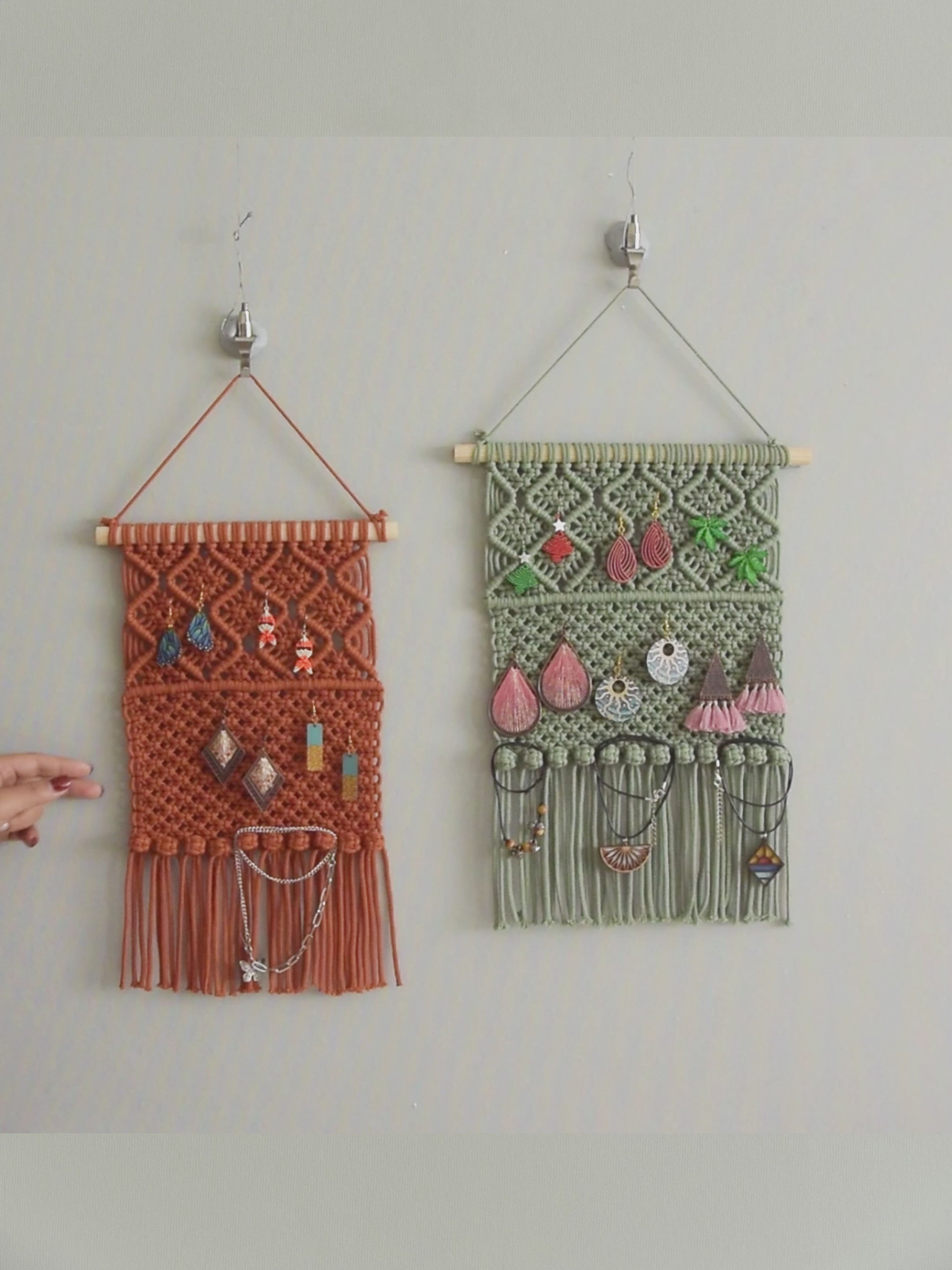 Looking for a stylish way to organize your earrings? This handmade macrame earring holder is the perfect blend of function and aesthetics. Crafted from premium cotton cord in earthy tones, it adds a cozy boho touch to your bedroom, bathroom, or closet.