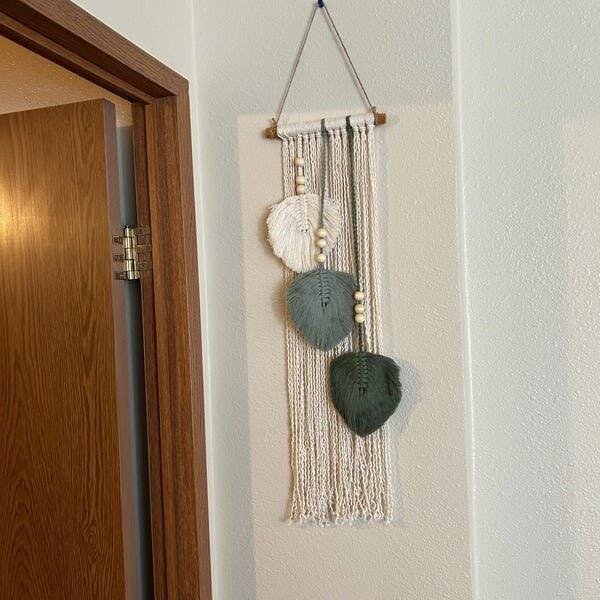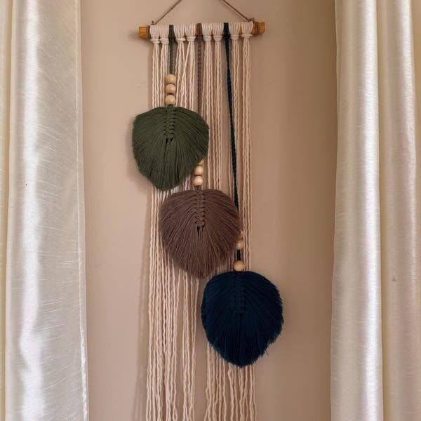 Designed for home decorators, gift shoppers, or anyone who enjoys cozy aesthetics, this macrame wall hanging looks stunning in living rooms, bedrooms, nurseries, or hallways. Whether you're updating your gallery wall or gifting a loved one for a birthday, housewarming, or holiday, this three leaves wall hanging brings warmth and elegance to any space.