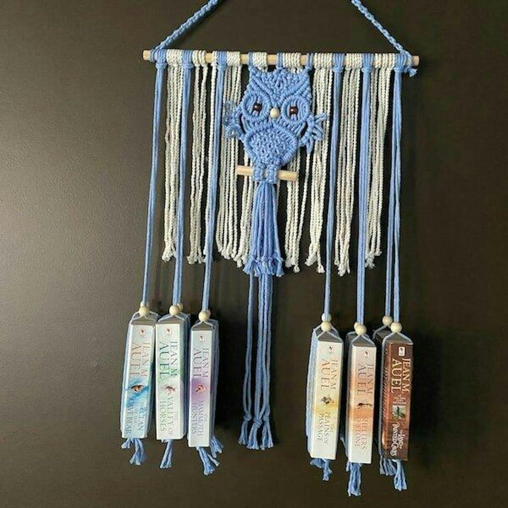 Macrame Owl Book Holder macrame for Wall Book Organizer H76
