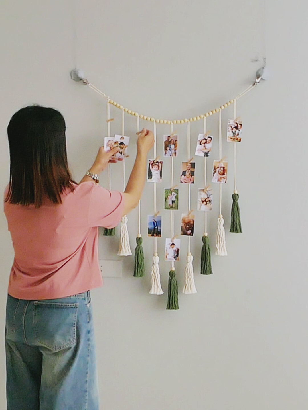 With its boho and minimalist influence, the macrame photo holder blends effortlessly into eclectic and modern interiors. The hanging design helps save wall space while creating a focal point filled with memories and emotion.