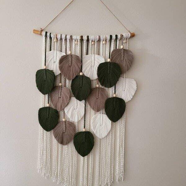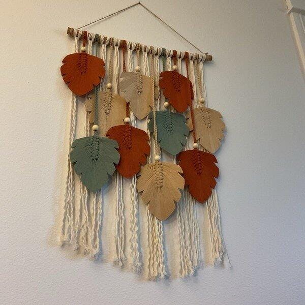 Boho Macrame Leaf Wall Hanging – Cotton Rope Rustic Wall Decor L33