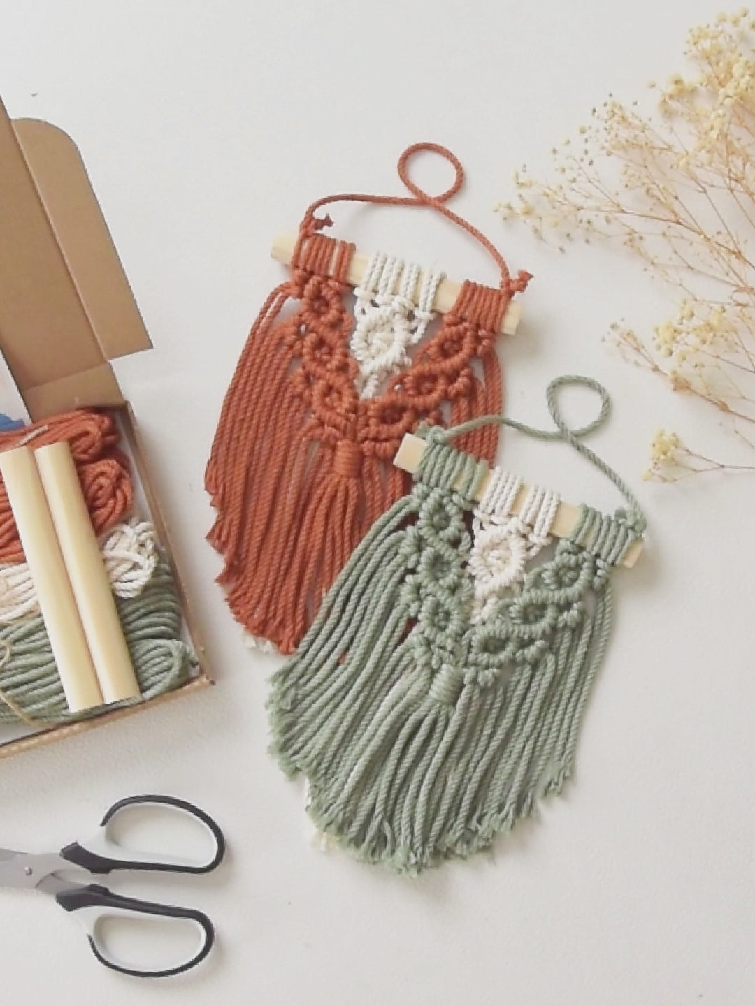 These kits include complete materials for you to make a macrame kit by yourself: Macrame Cord, Wooden Stick and Link to Tutorial video.